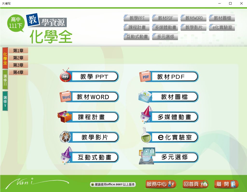 版 化學科(全、選修II、選修V) 教學光碟