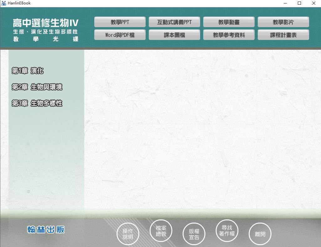 112學年上學期 高中 翰林版 選修生物(IV) 教學光碟