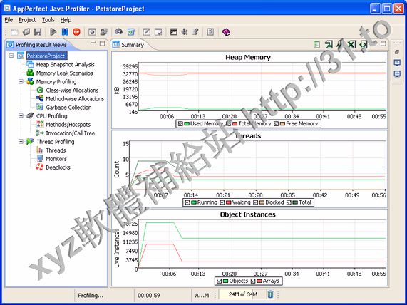AppPerfect Java Profiler profiles a Java Virtual