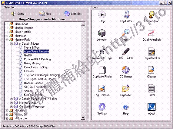 • KC Softwares AudioGrail v6.9.4.141 繁體中文/英文 多國語言正式版(音樂文件管理軟體)