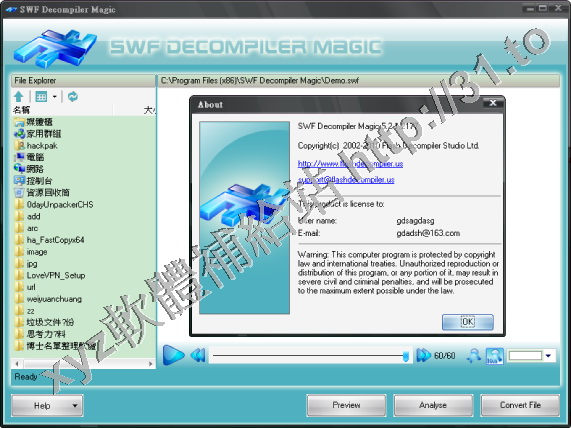 • SWF Decompiler Magic v5.2.1.2133 英文正式版(SWF格式文件和EXE格式之間進行轉換軟體)